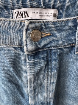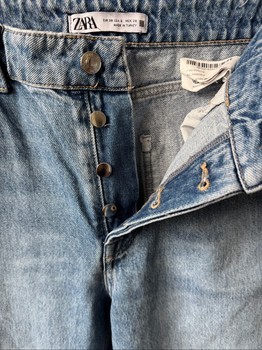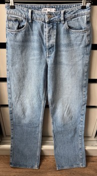 Light blue denim jeans with a button fly. Made of 100% cotton. Size 38.