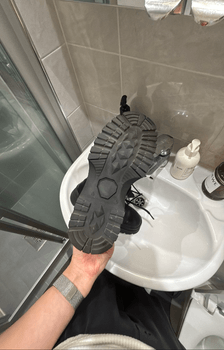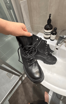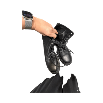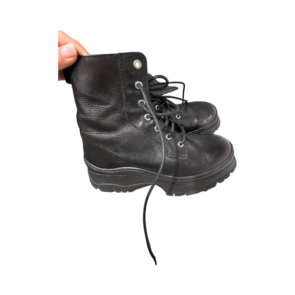 Combat boots featuring a black exterior with lace-up design and rugged sole. Suitable for casual wear or outdoor activities.