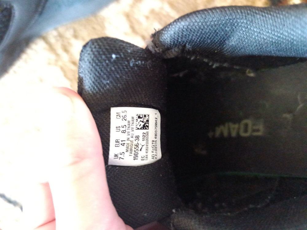 Black Puma sports shoes with lace-up closure and branded detail on the side. Size 41.