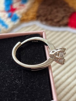 Adjustable silver ring with a clear stone setting. Hallmarked S925 on the inside.