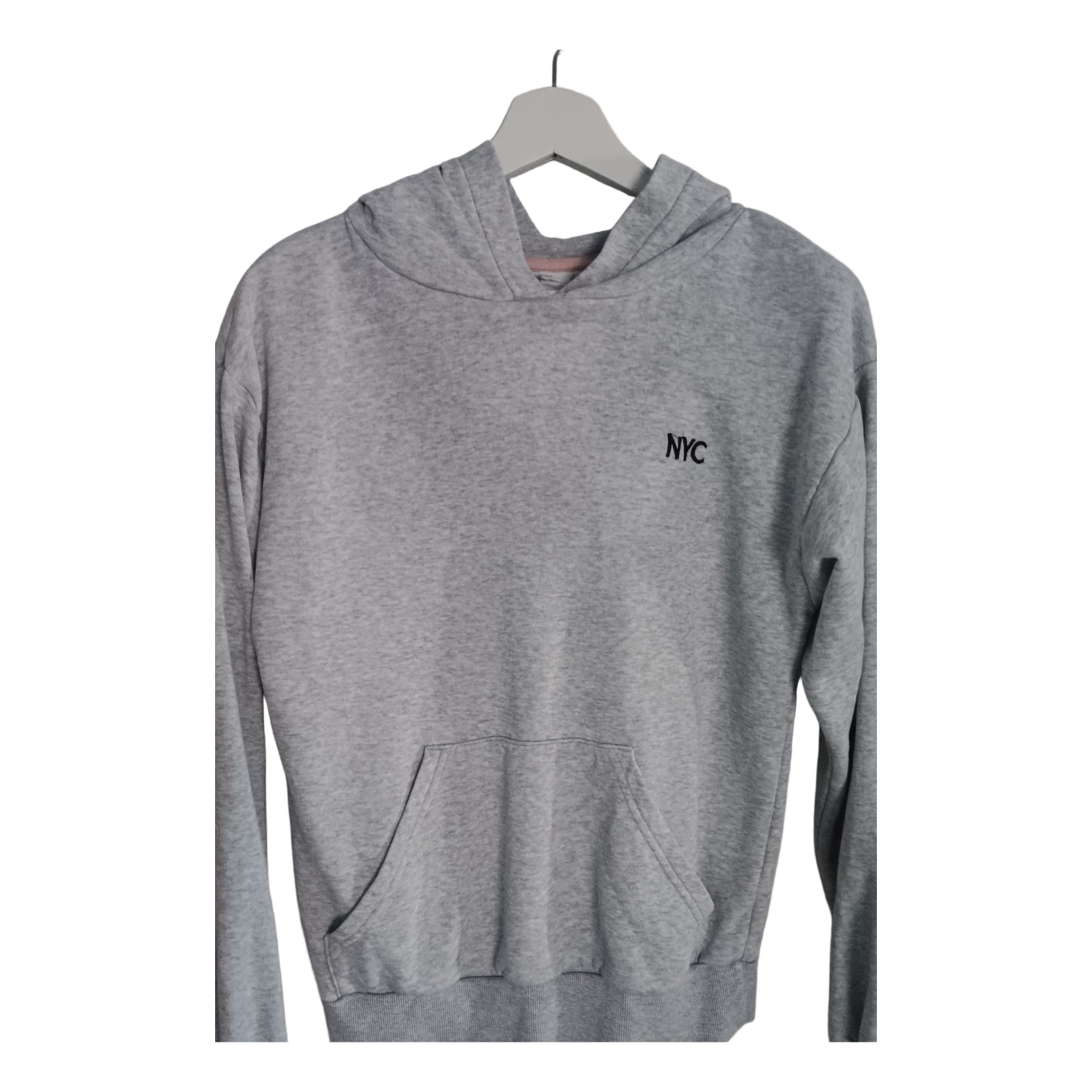 Gray hoodie with a small NYC text on the chest. Size 158/164.