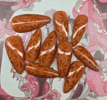 Tips are high-quality soft gel tips. If the nails have decorations, they are attached with CH Nails' bonding gel. Size (please see the picture, size marking is indicative) and the tips' details can be found in the images. They require adhesive tabs or glue for attachment - not included!