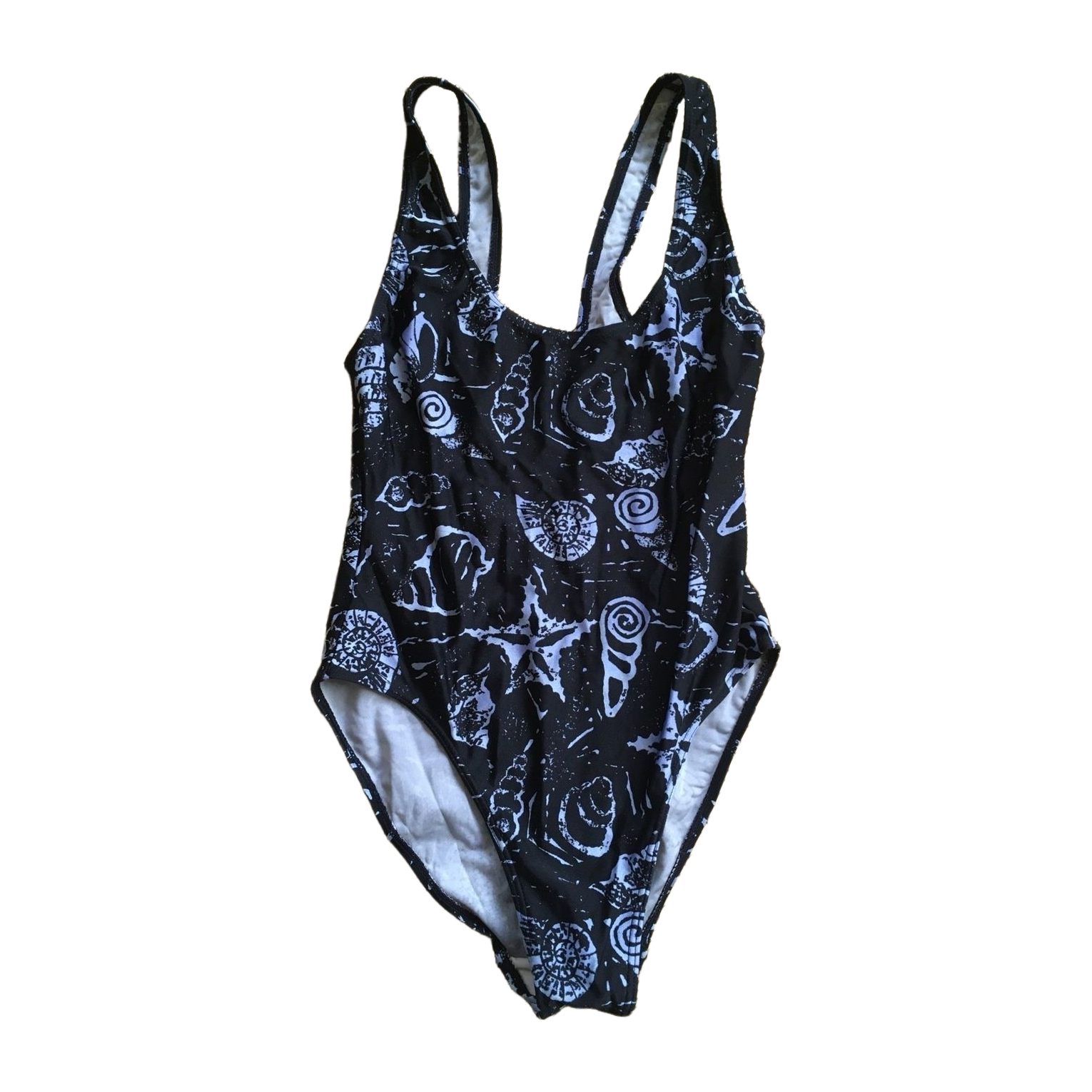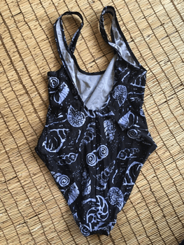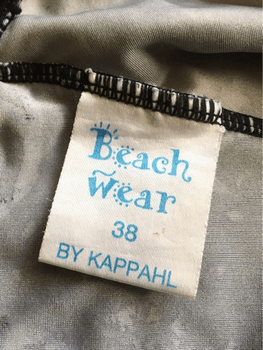 Simple swimsuit (no lining), retro model. The elastics are intact and still stretchy. At the buttocks area there is a slight blemish visible when looked at closely (visible in the picture).
