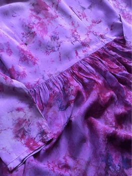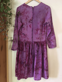 Beautiful and unique batik-dyed dress in shades of lilac and purple. The label says Kit-Kat Club. The fabric drapes nicely, does not stretch. Back zipper, which I have personally kept fastened at the top with an inconspicuous safety pin for security :) Free shipping with code RH3912