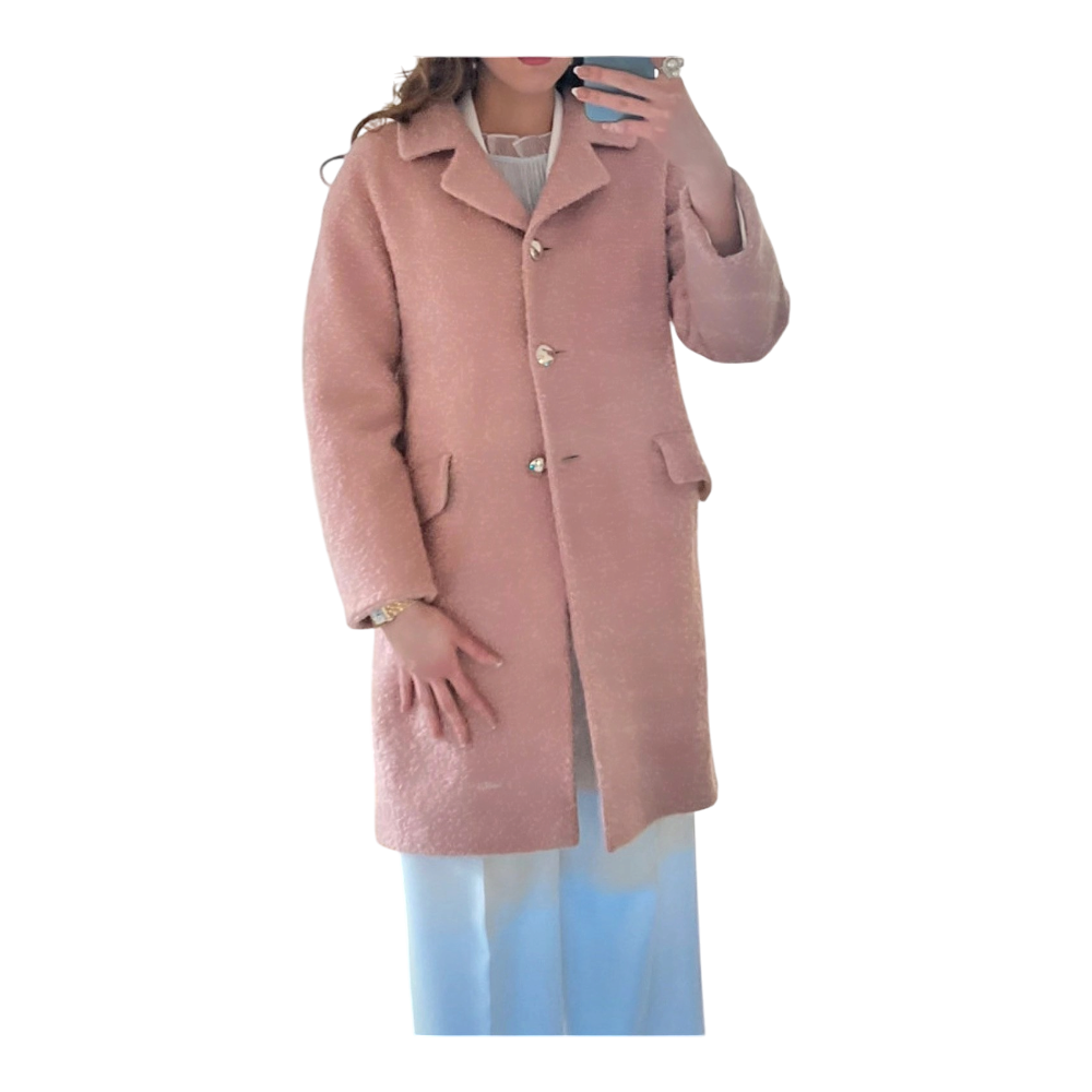 Light pink Manuela Conti coat. Made from kid mohair and virgin wool. Lining viscose.