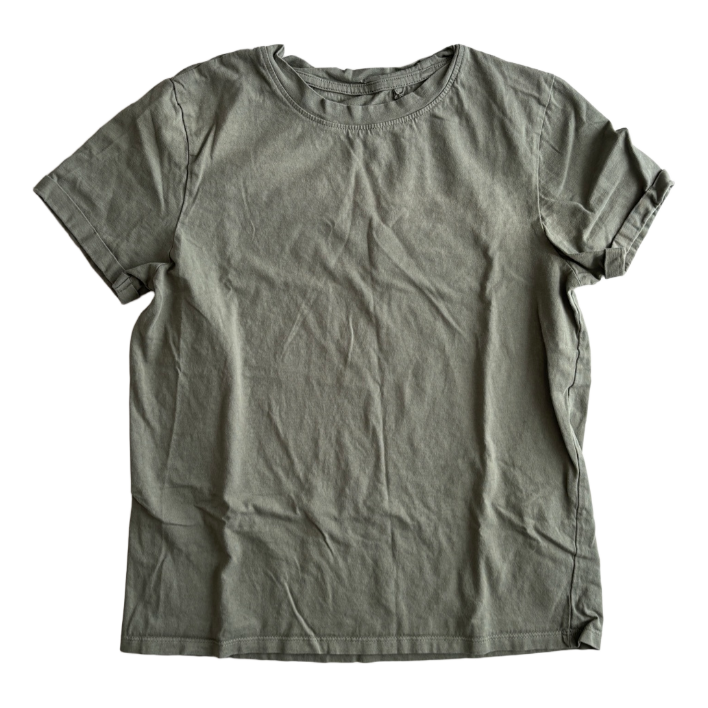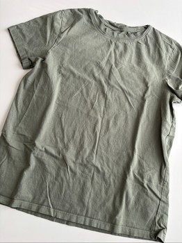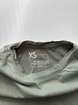 Green T-shirt. According to the size tag XS, but I would say rather S. More precise measurements in the pictures. Used, but intact and clean. No complaints about condition.