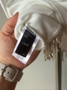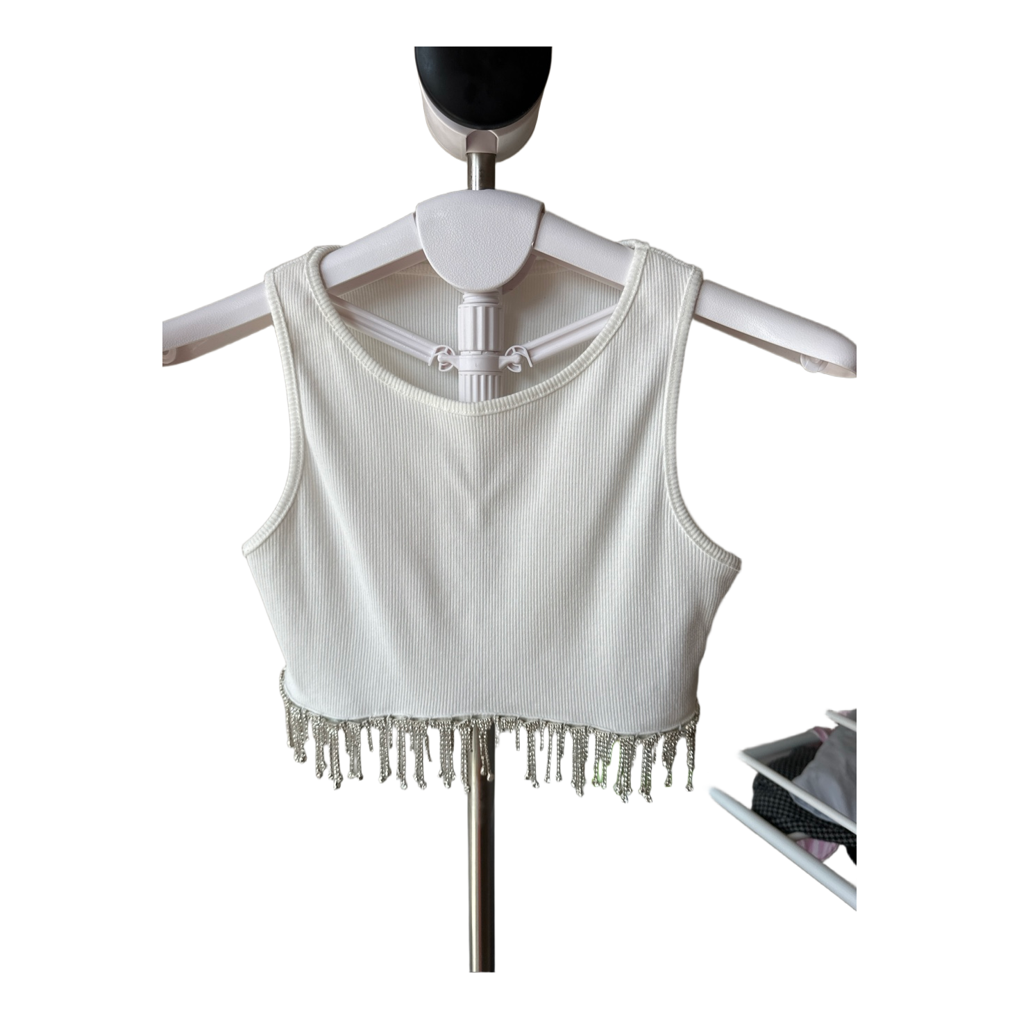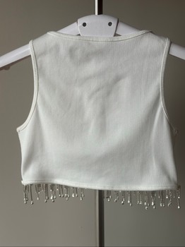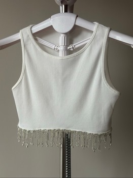 White rhinestone fringe crop top