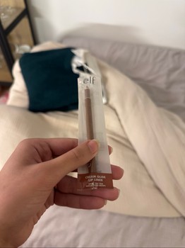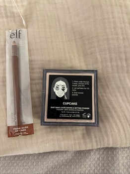 E.l.f. cream glide lip liner in color Spill The Tea and Huda Beauty Easy Bake loose baking and setting powder in shade Cupcake.
