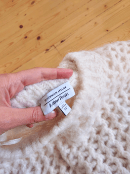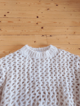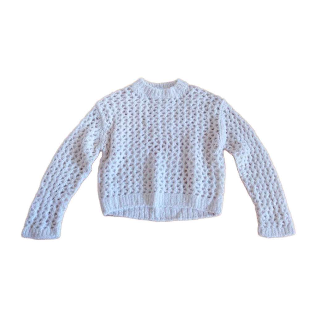 Light & Other Stories' openwork knit 💜 Size S, color natural white. The knit sheds a little fuzz. Shoulder to hem approx 51 cm, armpit to armpit approx 55 cm. Model name 'oversized heavy knit sweater' #knit #laceknit #cleangirl #coastal #openwork