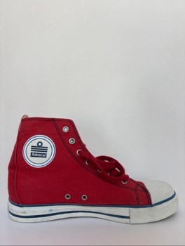 Red canvas high-top sneakers