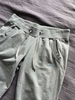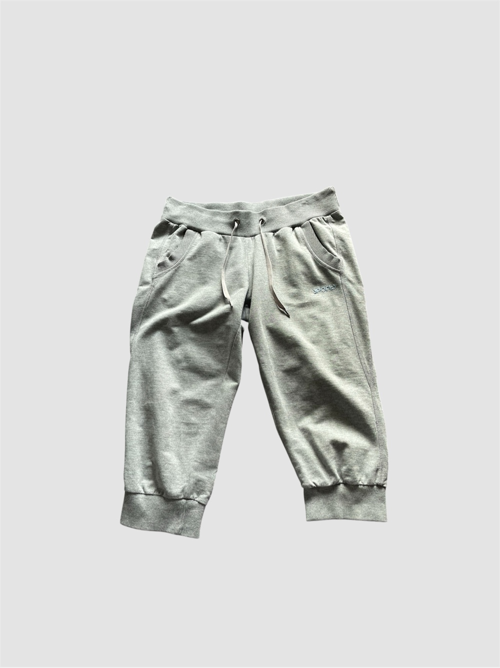 Capri sweatpants with an elasticated waistband and drawstring. Features ribbed cuffs and a small logo detail. Size 36/38.