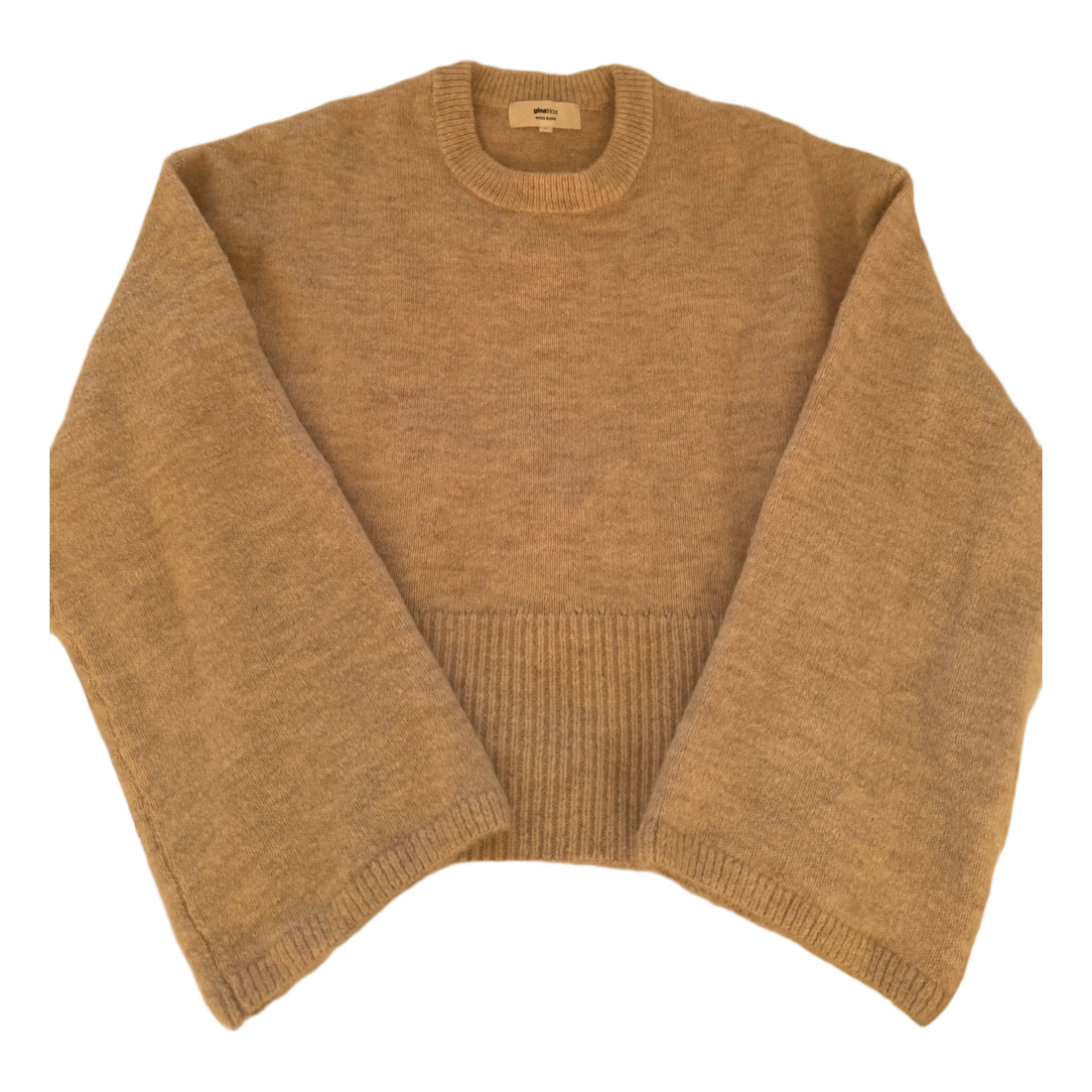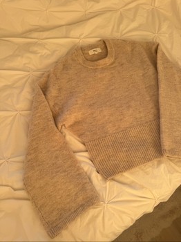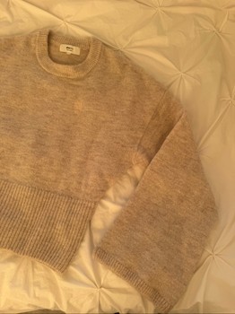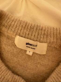 Beige neulepaita. Koko S, valmistettu akryylisekoitteesta.