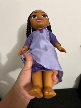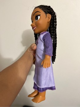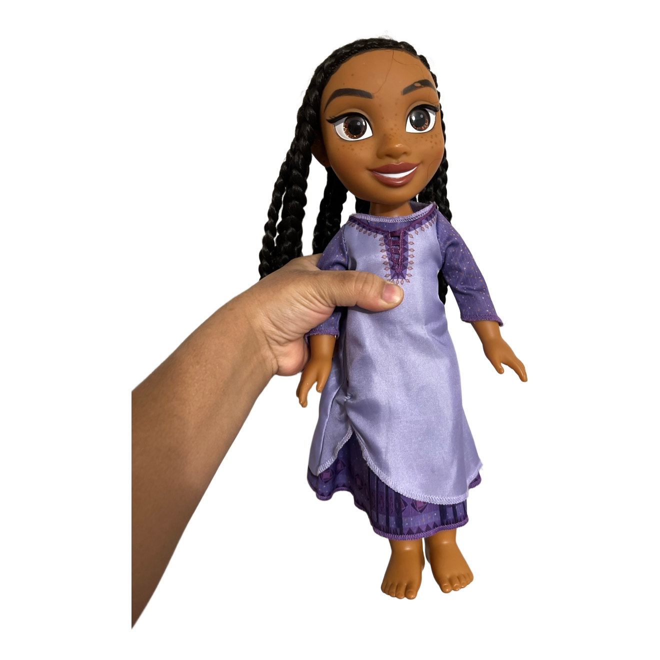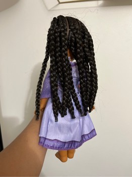 Disney character doll featuring braided dark hair and a purple dress with patterned details.