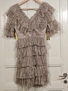 By Malina lovely Sky party dress. Color beige. Slip underneath. Size XS. Underarm-to-underarm approx. 44 cm, shoulder-to-hem approx. 87 cm. Side zipper makes dressing easier. The dress is like new, worn once at a party. New price €285, the dress is still sold e.g. at Stockmann.