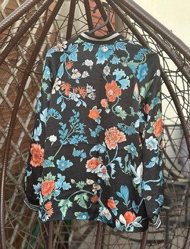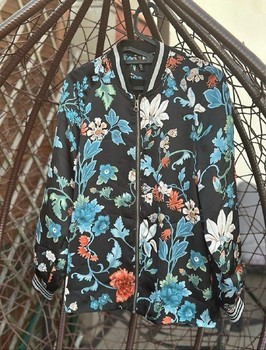 Black floral bomber jacket