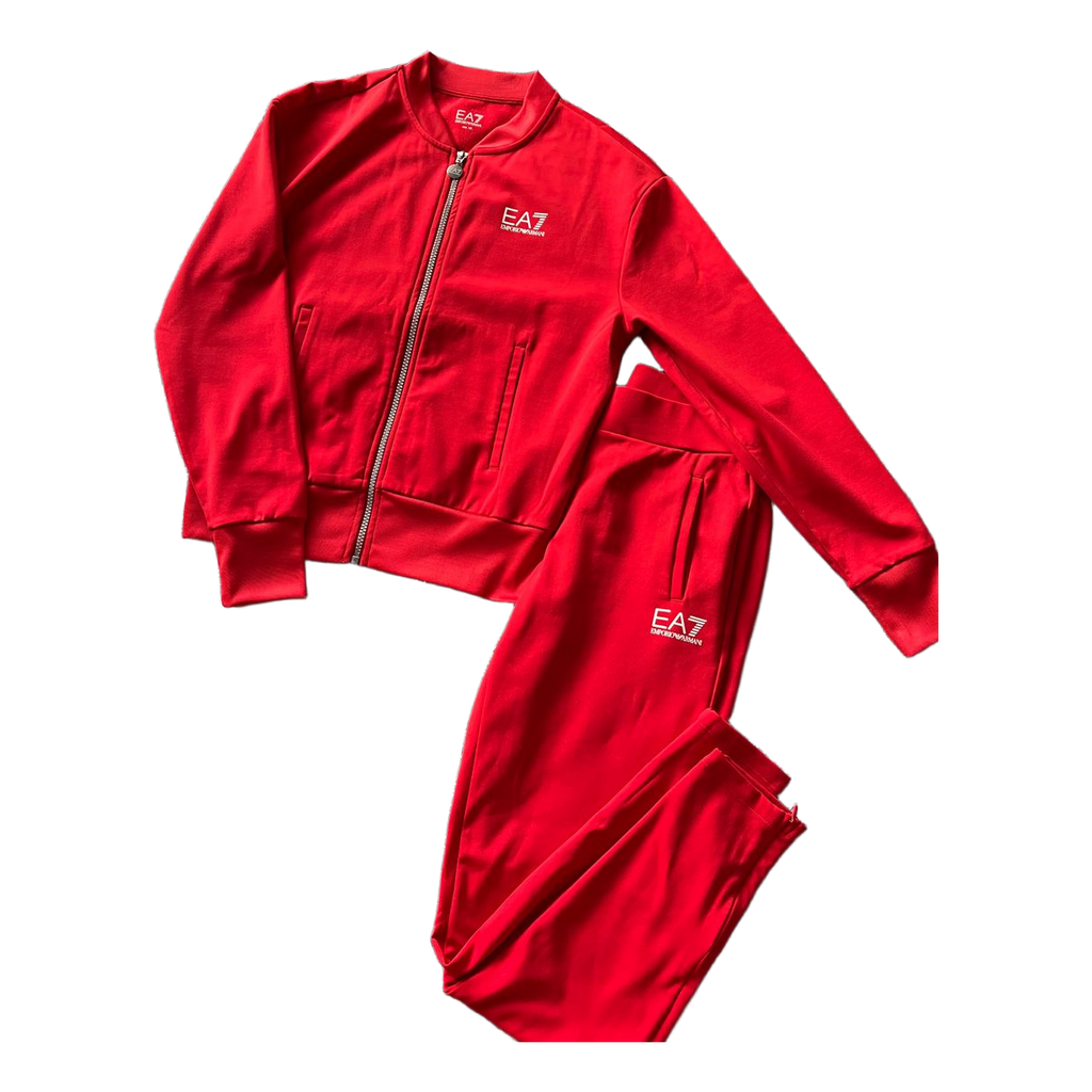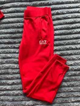 Two-piece EA7 Emporio Armani tracksuit in red. Includes a zipped jacket and matching trousers. Size XS. Parduodu pavedimu