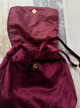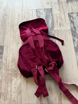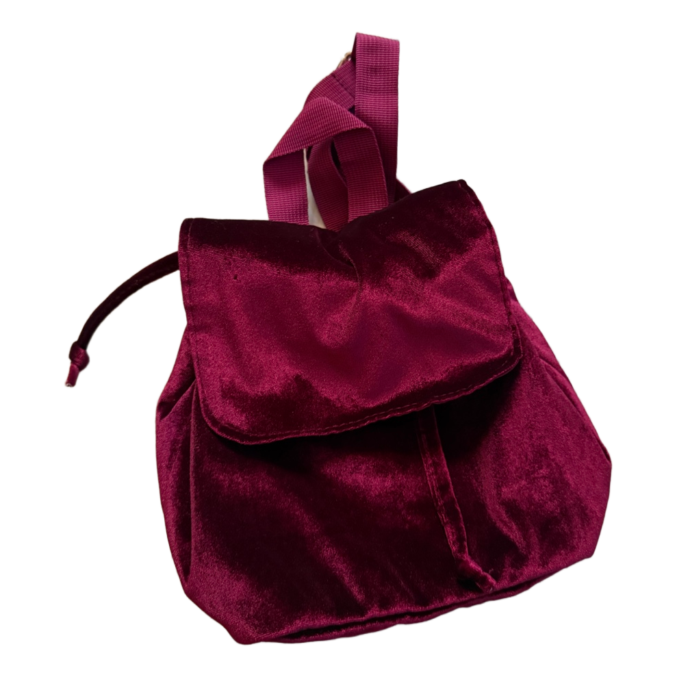 Mini backpack in burgundy velvet. Features a flap with magnetic closure and adjustable straps.