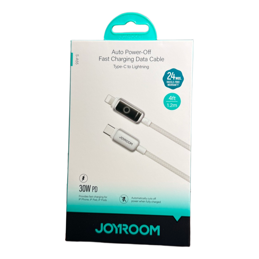 Apple models charging cable braided fabric. This smart safety cable with integrated microchip automatically regulates voltage and current and stops charging when 100% is reached, thus protecting the battery from overcharging and overheating. Material: braided fabric Color: White Length: 1.2m Power: 30W