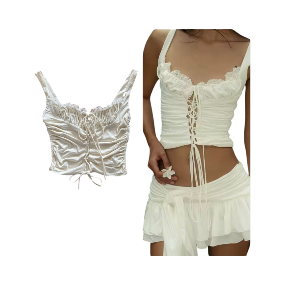 For women, lace-edged lacing at the front, short top.