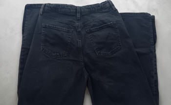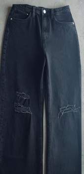 Black, high-waisted and wide-leg jeans. Size 152.