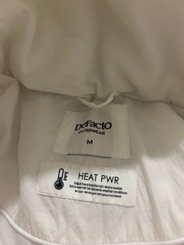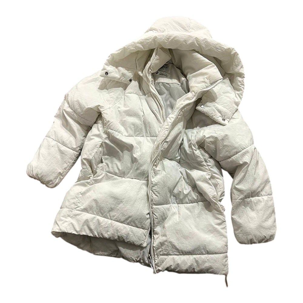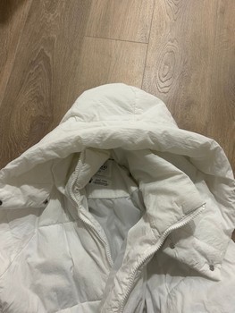White DeFacto puffer jacket. It has a hood and zipper fastening. The jacket provides extra warmth.