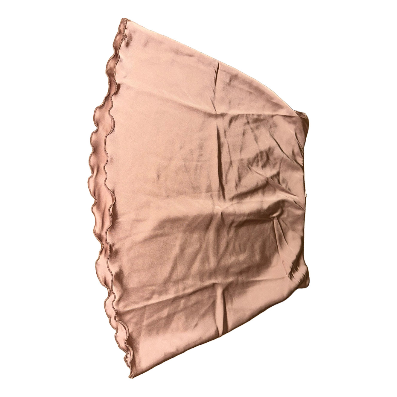 Short mini skirt in a pink satin fabric with a wavy lettuce hem detail.