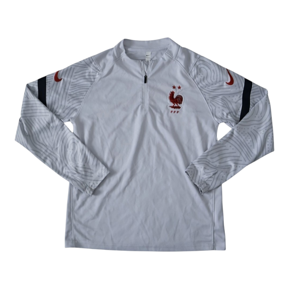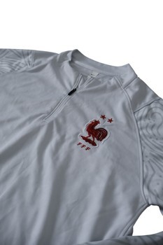 White half-zip shirt. Stripe pattern on the sleeve and FFF logo on the front. Size S.
