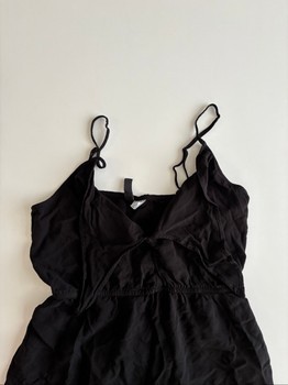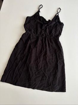 Black mini dress. In the front the fabric can be tied into a knot as a detail. Adjustable straps. According to the size label 36 i.e. S, but I would say it fits an XS or a small S better. More precise measurements in the pictures. Used, but in excellent condition. Intact and clean. No complaints about the condition.