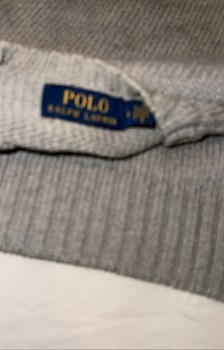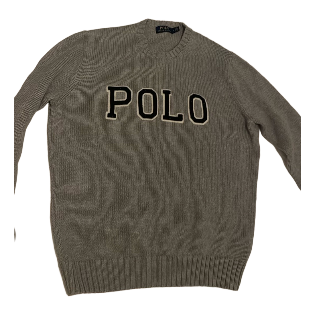 Grey Polo Ralph Lauren sweater with a striking "Polo" text on the front. Size M.