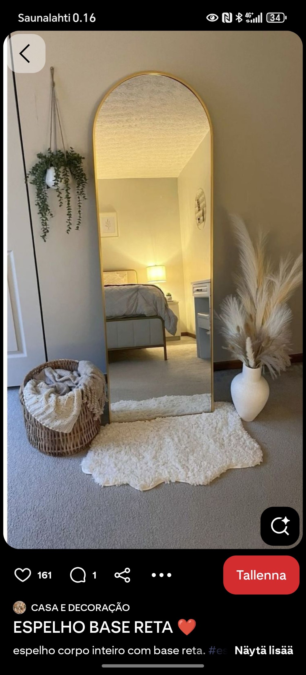 Gold-edged arched mirror. Modern interior element. Height 50 cm, width 150 cm. Bought in Tallinn from the Ulemiste interior shop, RRP €99. Pickup Turku city centre