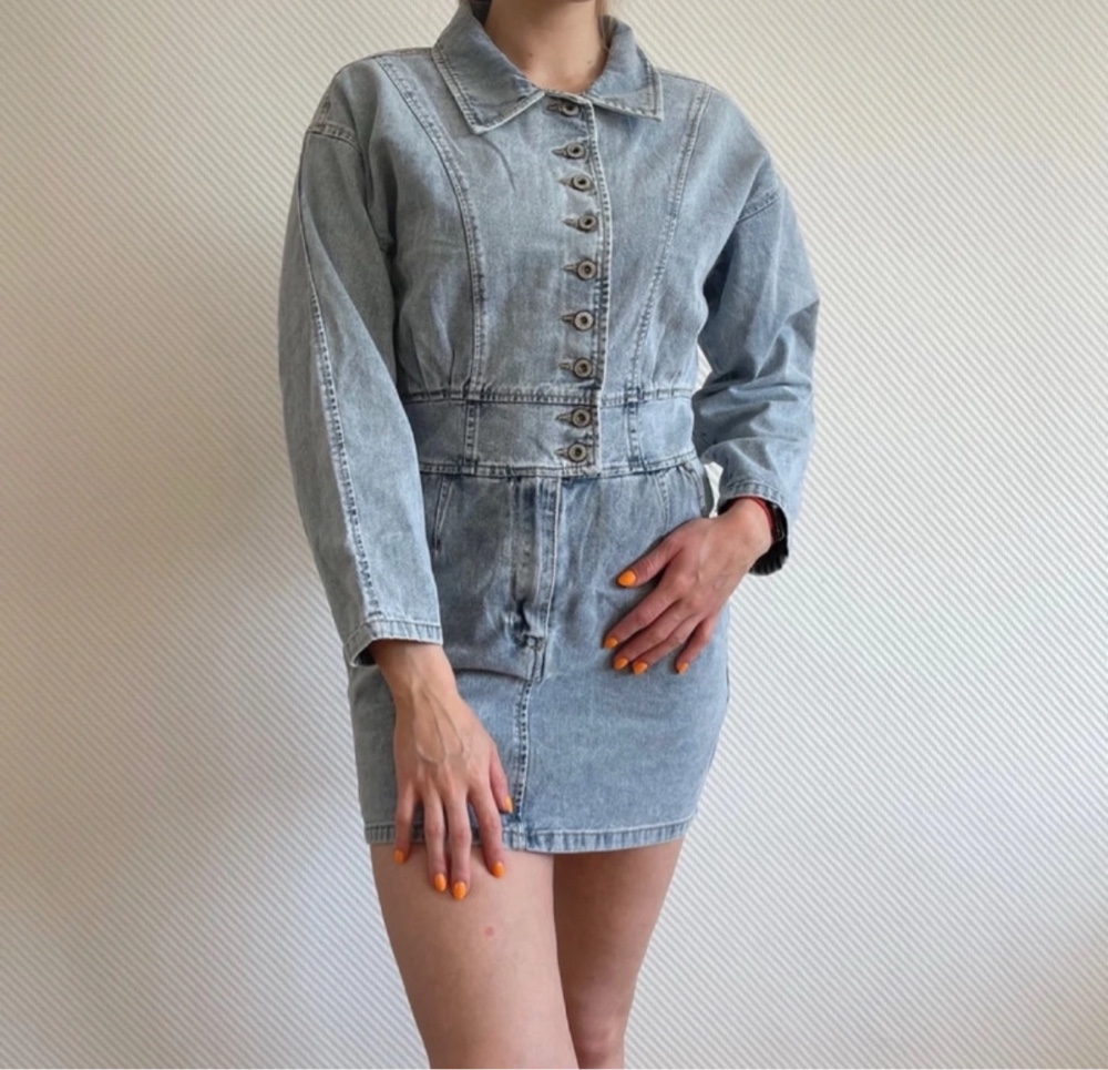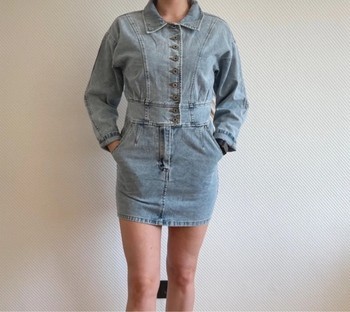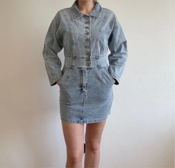 Mini denim dress with buttons and a fitted waist.