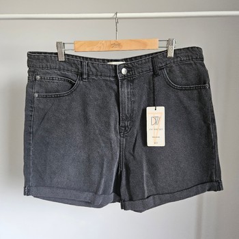 DTT Don't Think Twice High Waisted Denim Shorts UK18 Black Grey Curve Summer Casual
