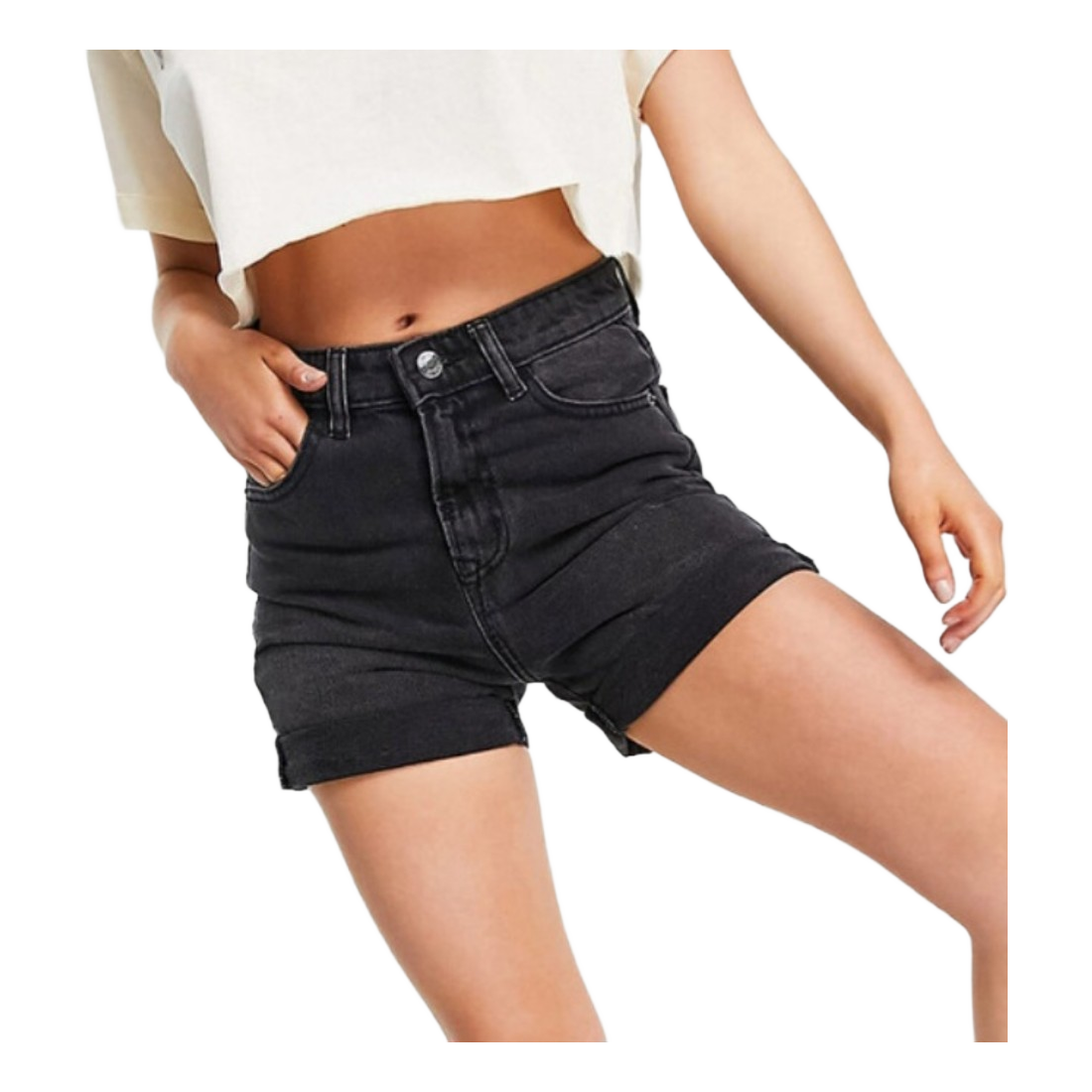 Classic and comfortable design in washed black/charcoal denim with rolled hems and flattering high rise fit. Easy to style for summer, festivals, holidays, or casual everyday outfits.