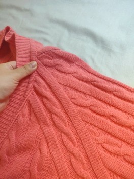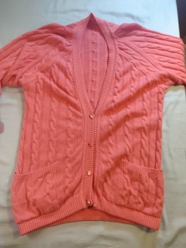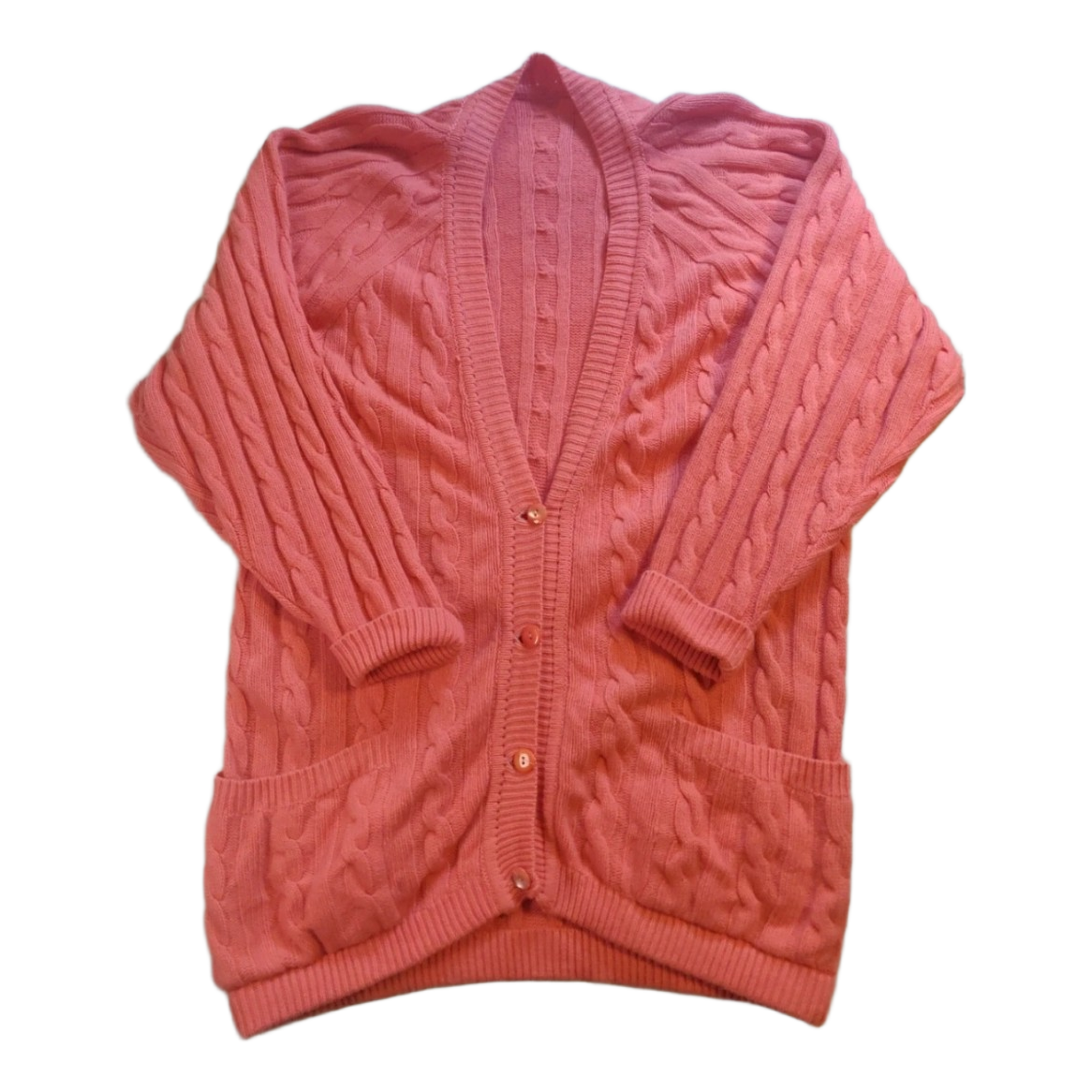 Vintage cardigan, wool sweater, angora, wool blend, cable knit, coral pink, oversized, long cardigan, warm knit, boho, cottagecore, quality knit.
