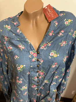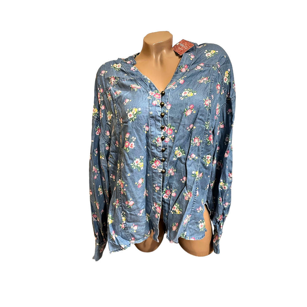 Shein Blue floral button-up shirt