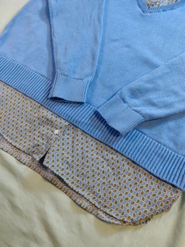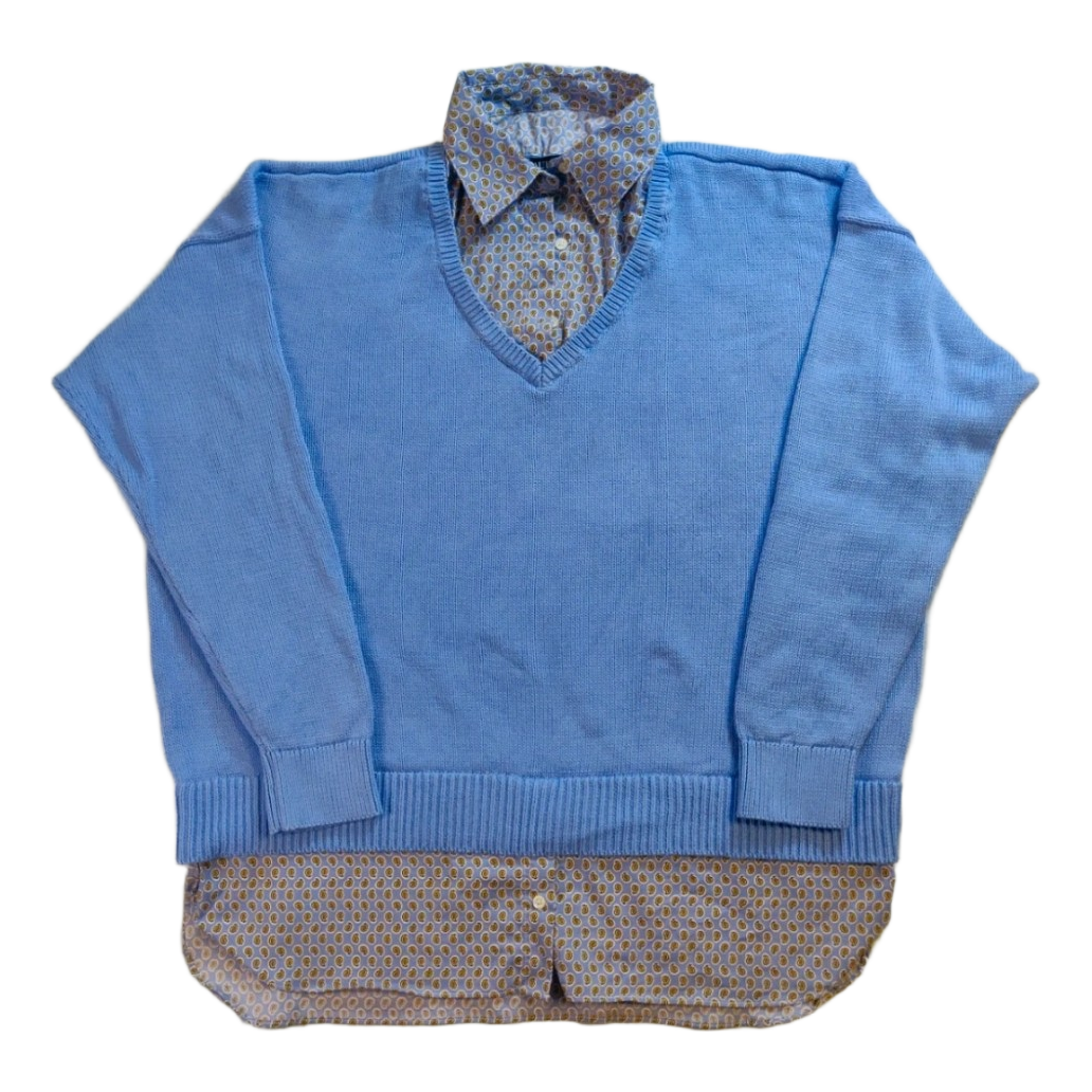 Lauren Ralph Lauren 2-in-1 Sweater Shirt - 100% Cotton - Blue - XL