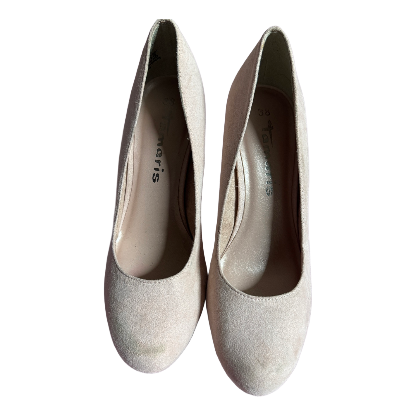 Beige suede-look high heel pumps. Size 38.