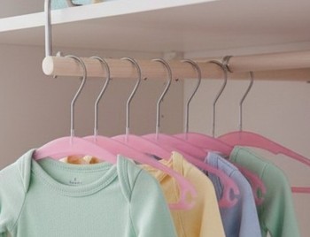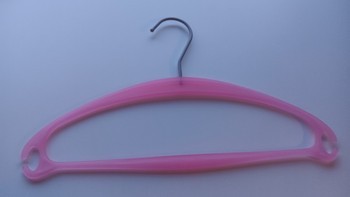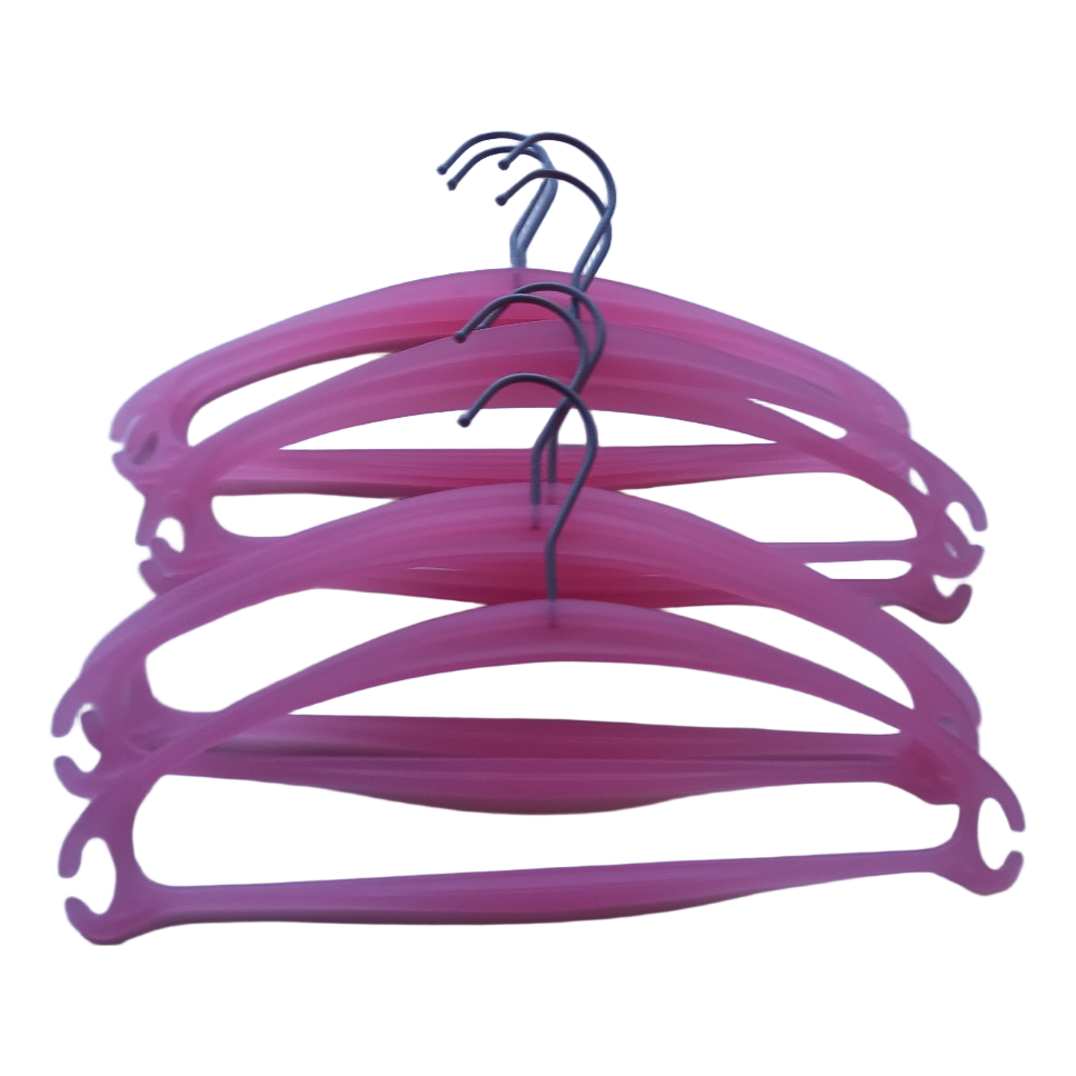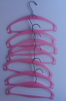 Light pink children's plastic clothes hangers with hook. 7 pcs. Length 30 cm.