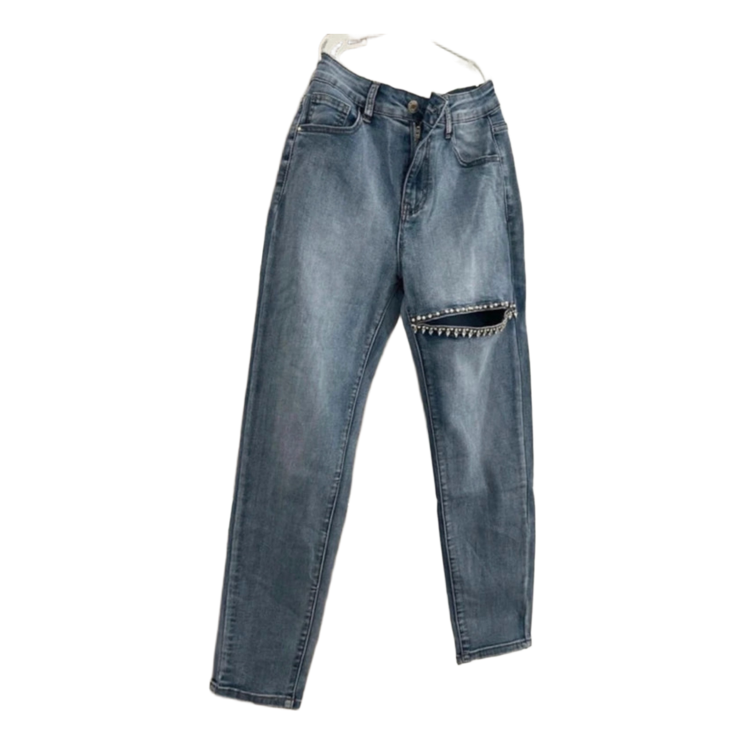 Shiny mom fit style jeans. Very stretchy, elastic, soft denim, higher waist. Size fully corresponds.