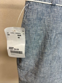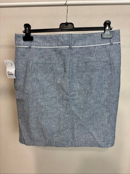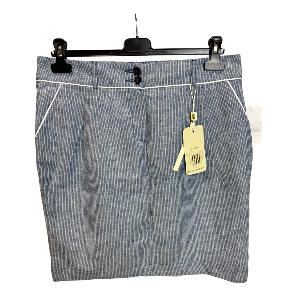 Striped skirt in a linen and cotton blend. Features a waistband with button closure and partial lining. Size 40.