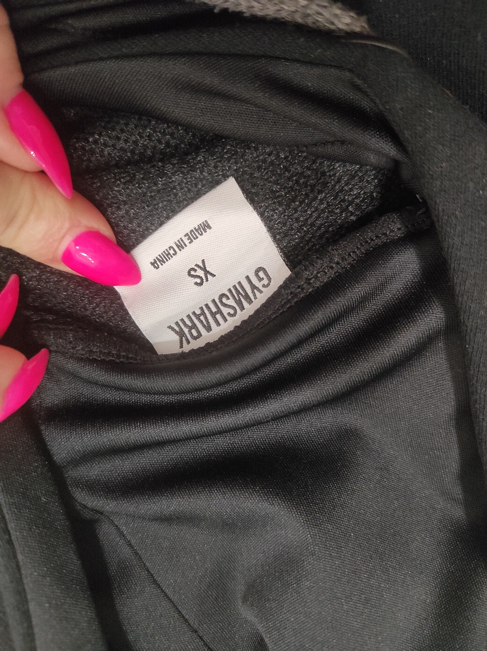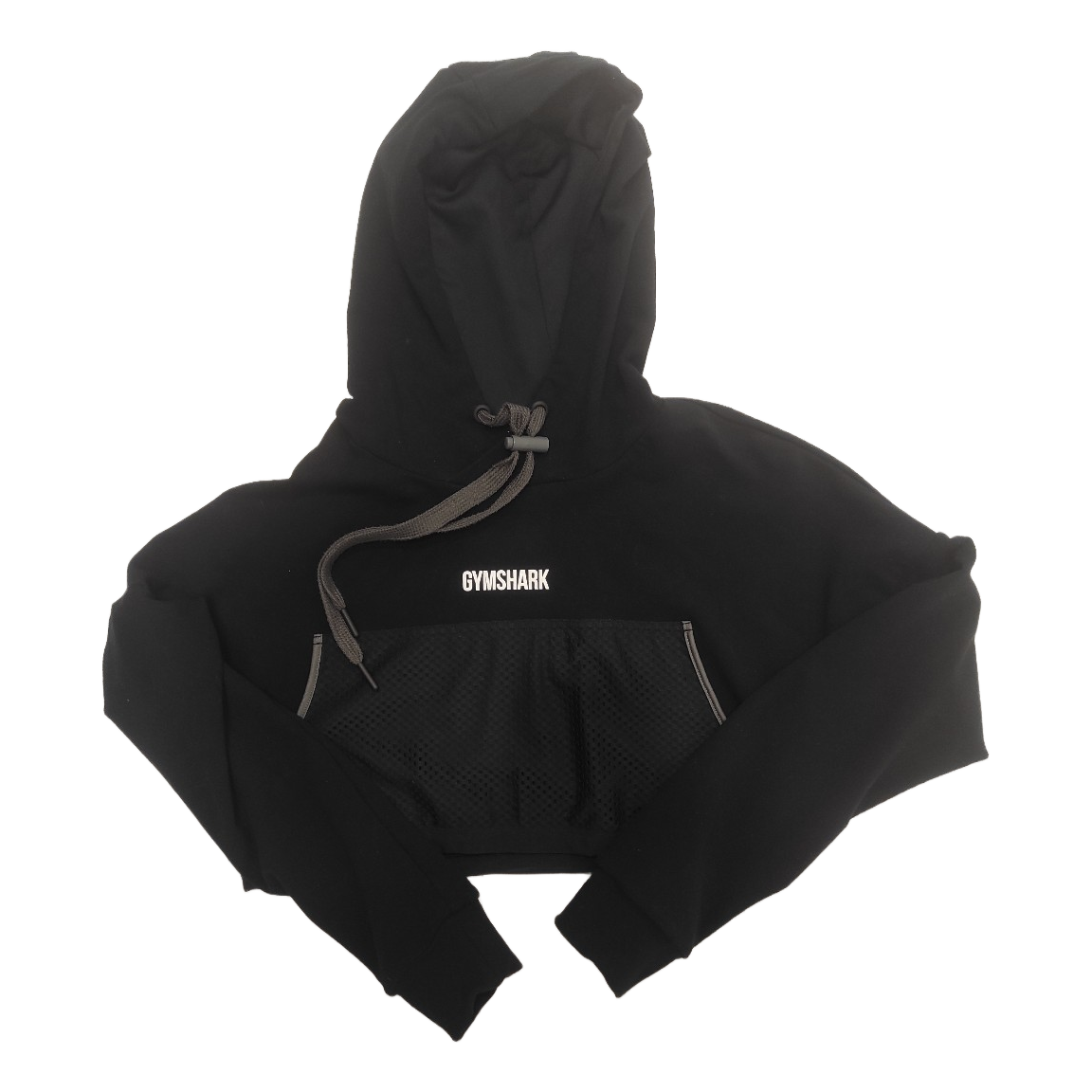 Black Gymshark cropped hoodie with a drawstring hood and front pocket detail. Size XS.