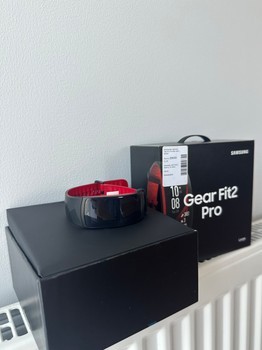 Samsung Gear Fit2 Pro fitness watch in black and red. Includes original box and packaging. Size L. New.