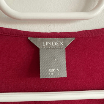 Light, breathable and super comfortable burgundy tank top from Lindex, size S. Front panel made of 100% viscose, back panel of a soft lyocell–viscose blend. Flowy, slightly A-line cut with a classic round neckline. Great everyday basic and in very good condition.