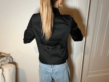 Short-sleeved black jacket with buttoning at the front. Stylish design and stretchy material.
