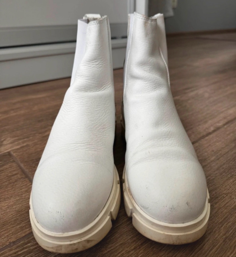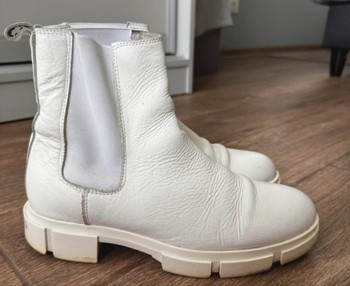 White leather Chelsea boots with chunky soles. Size 40.