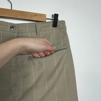 Halti khaki checked skort. Zipper and button fastening, pockets at front and back. Material 97% polyester and 3% elastane. Size 38. Very good condition.
