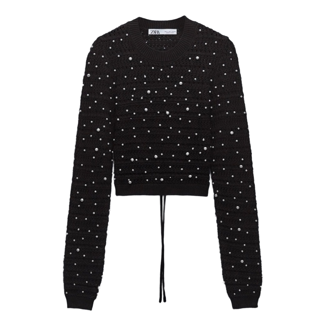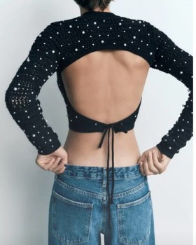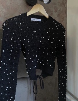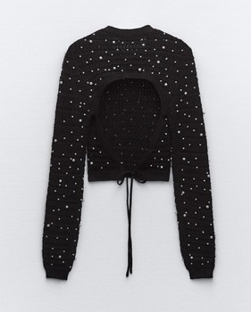 ZARA Black Open Back Pearl Knit Sweater
