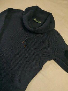Ajaton naisten tummansininen neule, jossa cowl neck -kaulus. Pehmeä ja mukava päällä.