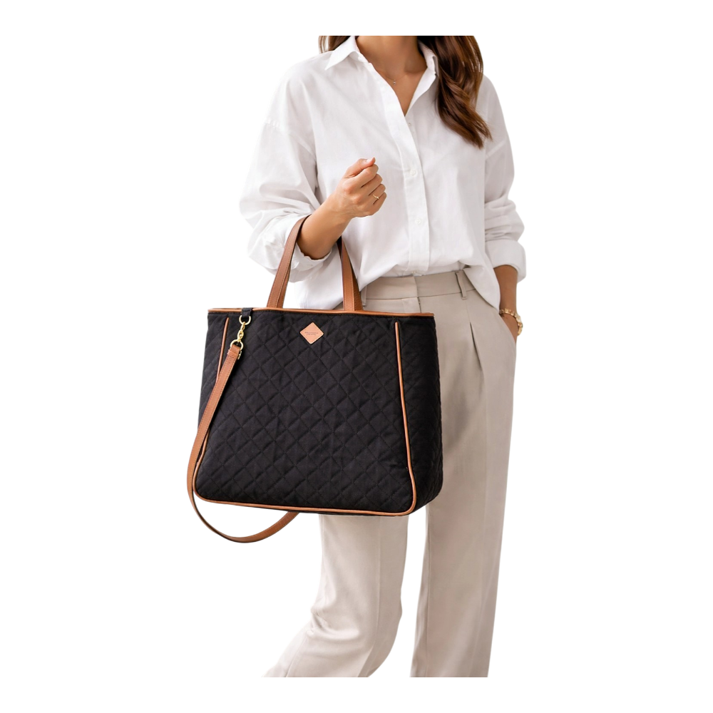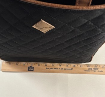 Black quilted bag from Tommy Hilfiger with brown details. The bag has the option for both handles and crossbody.