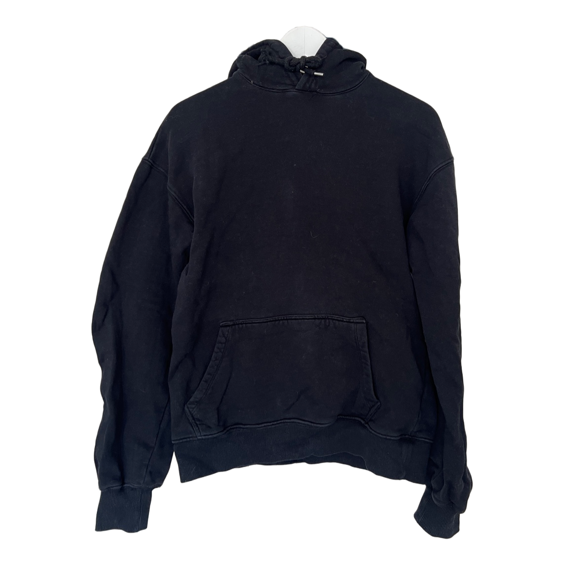 Black hoodie with drawstrings and kangaroo pocket. Size XS.